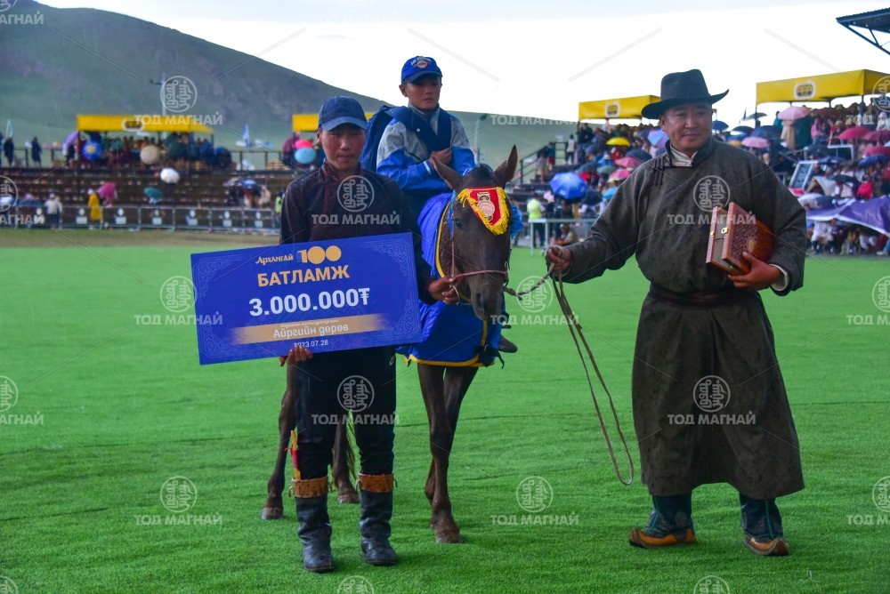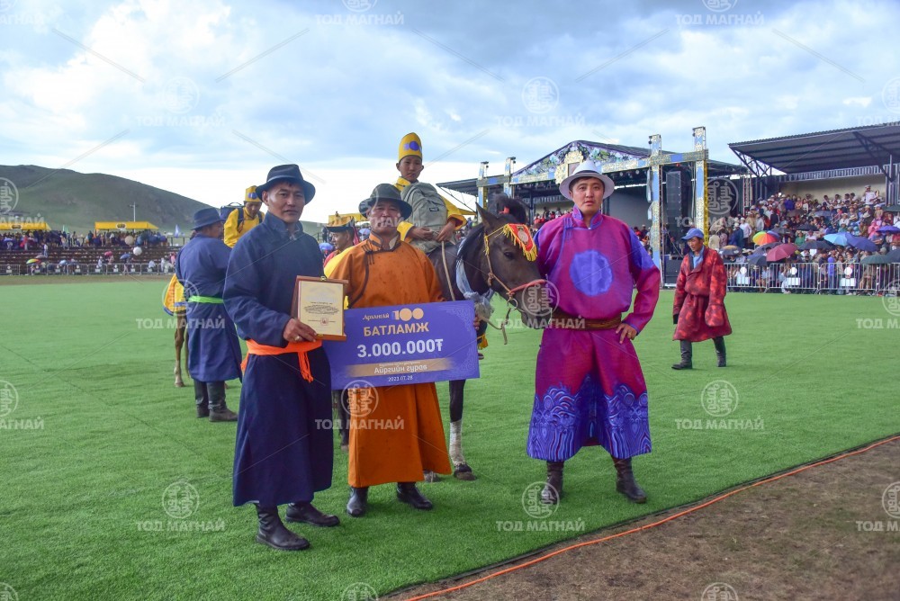 3. Архангай аймгийн Эрдэнэмандал сумын харьяат Сүхбаатарын Алтангэрэлийн халтар. Уяа сойлгыг аймгийн Алдарт уяач Г.Батсайхан. Төв аймгийн Дэлгэрхаан сумын 100 жилийн ойд айргийн гуравт хурдалсан.