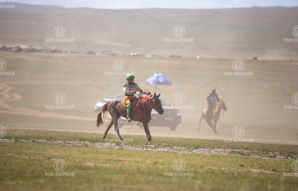 Түрүү магнайд Төв аймгийн Дэлгэрхаан сумын Шаравын Мөнгөншагайн сартай хээр. Уралдаанч 10 настай М.Энх-Эрдэнэ, уяа сойлгыг Монгол улсын Тод манлай уяач Г.Буянтогтох.